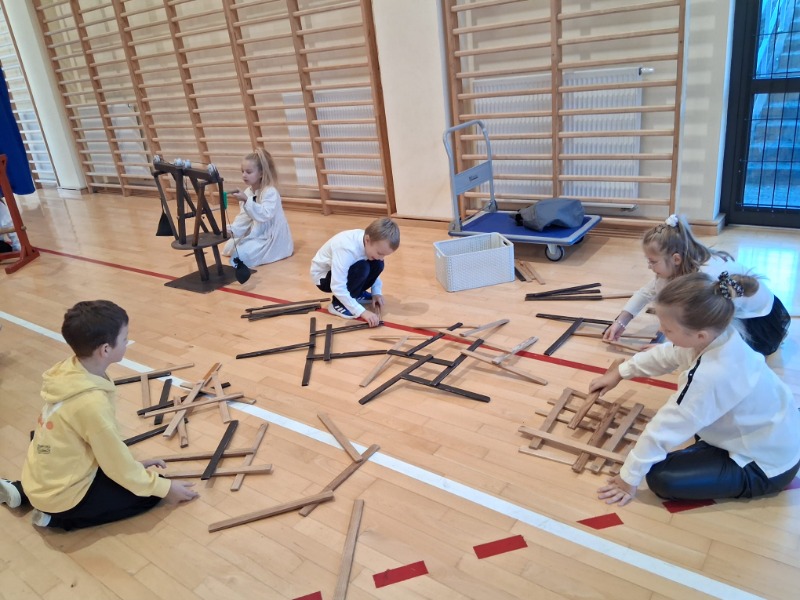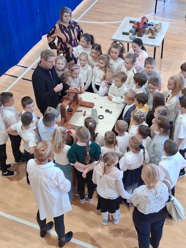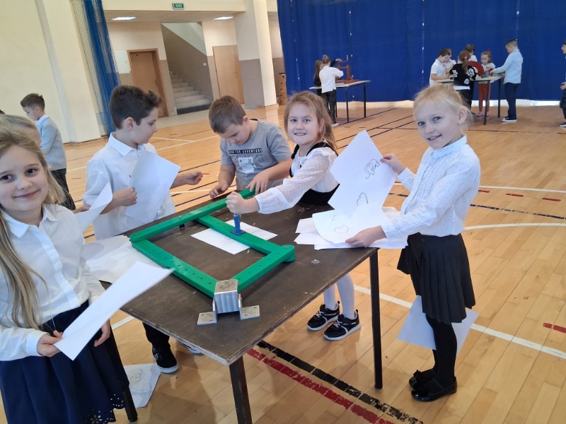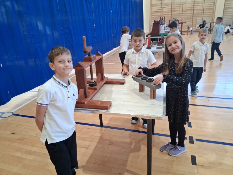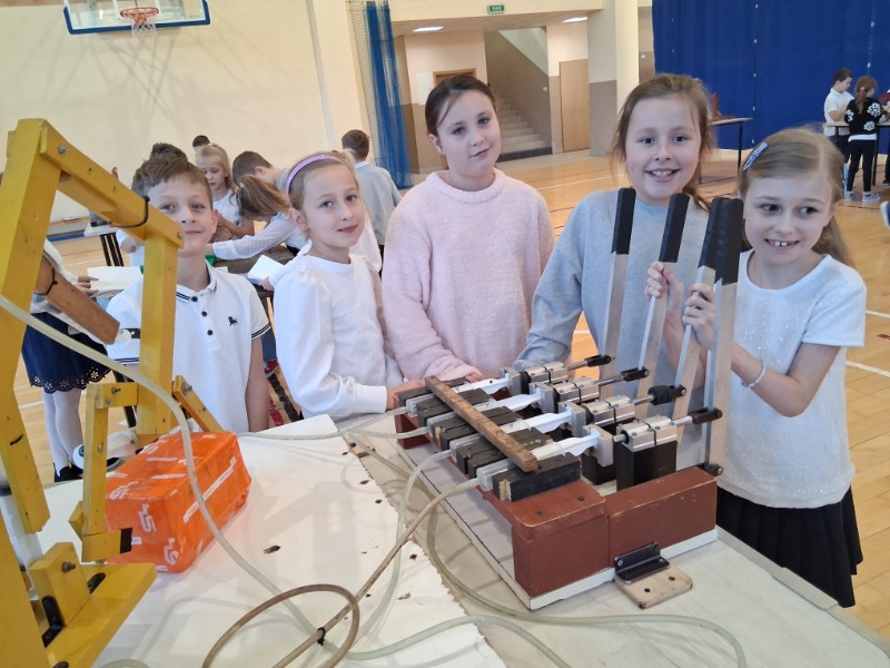 W tym dniu, 7 listopada, uczniowie brali udział w warsztatach z modelami edukacyjnymi pt. Wynalazki Leonarda da Vinci, podczas których sami sprawdzali działanie różnych wynalazków praw fizyki.