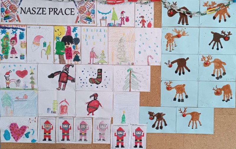 Codziennie wybrany uczeń odkrywał gwiazdkę zawieszoną na drzewku, aby sprawdzić, z jakim wyzwaniem zmierzy się cała grupa. Zadania były różnorodne i wprowadzały wszystkich w świąteczny nastrój. Wśród zadań znalazły się m.in.: przygotowanie łańcucha na choinkę, wykonanie renifera z odciśniętej dłoni, stworzenie portretu św. Mikołaja, a także wykonanie ozdób na choinkę. Nie zabrakło również zadań integrujących i uczących życzliwości takich jak podaruj wybranej osobie dobre słowo, wspólne zaśpiewanie kolędy czy wysłuchanie opowieści wigilijnej. „Świąteczne Drzewko Zadań” sprawiło, że każdy dzień był pełen niespodzianek, uśmiechu i wspólnej zabawy. Dzięki tej inicjatywie oczekiwanie na Święta stało się jeszcze bardziej radosne i pełne magicznej atmosfery.