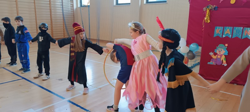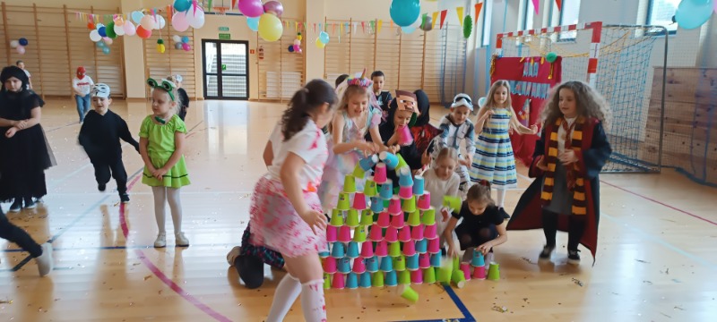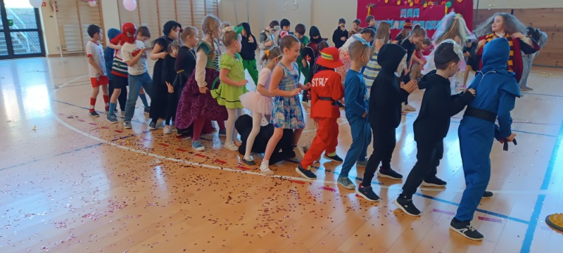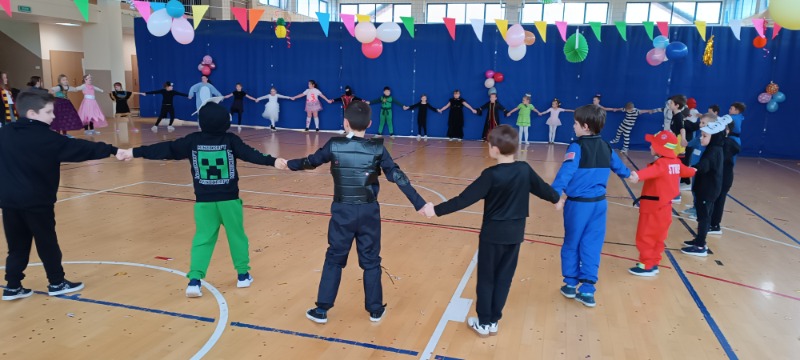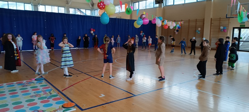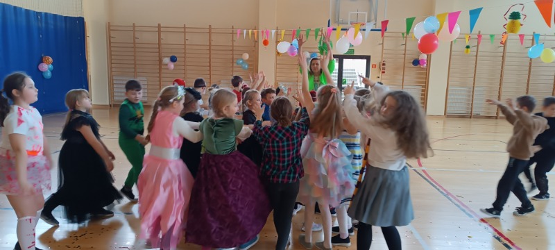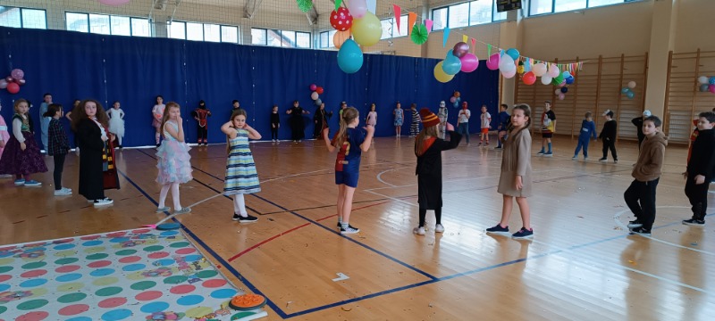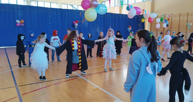 W dniu 11 lutego w naszej szkole odbył się Bal Karnawałowy dla uczniów klas I–III. Tego dnia sala gimnastyczna zamieniła się w kolorową, pełną radości i muzyki przestrzeń, w której nie brakowało uśmiechów i wspaniałej zabawy.