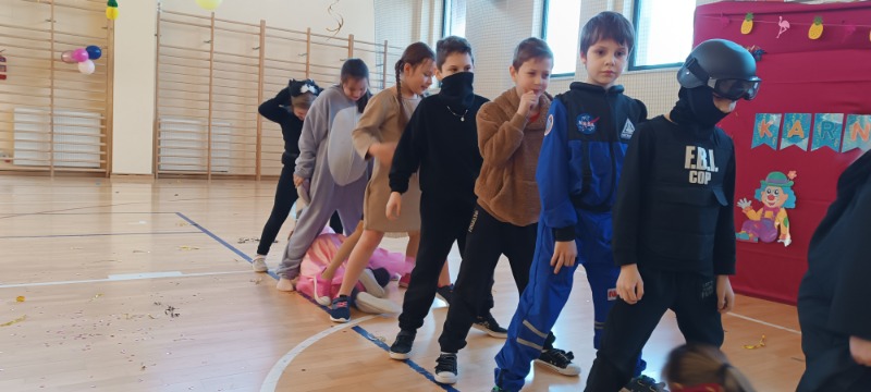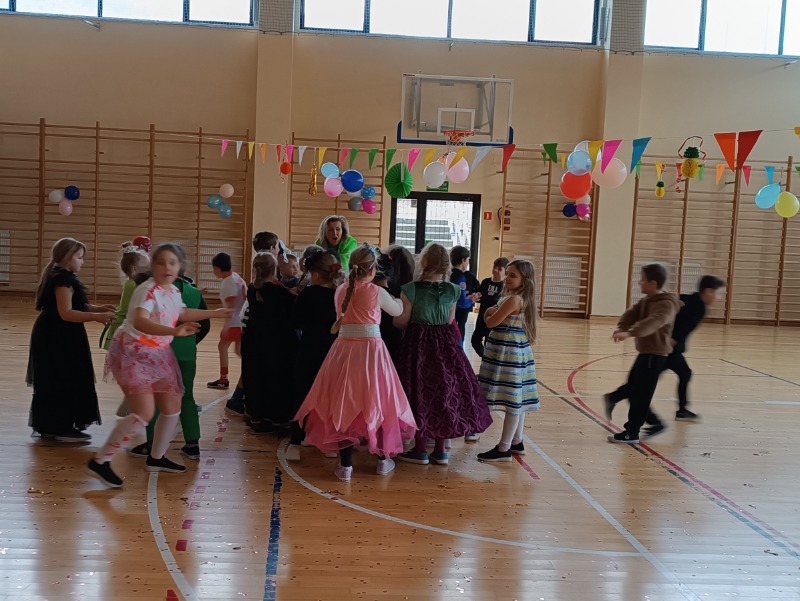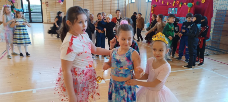 Uczniowie wykazali się ogromną kreatywnością w kwestii strojów karnawałowych – na parkiecie pojawiły się postacie z bajek, superbohaterowie, księżniczki, sportowcy i wiele innych niezwykłych osobistośći.