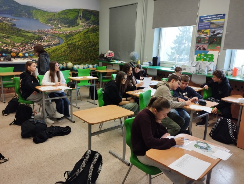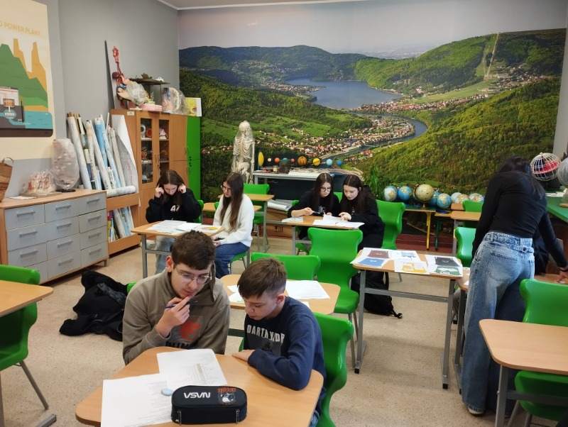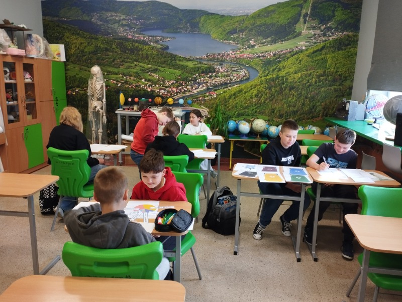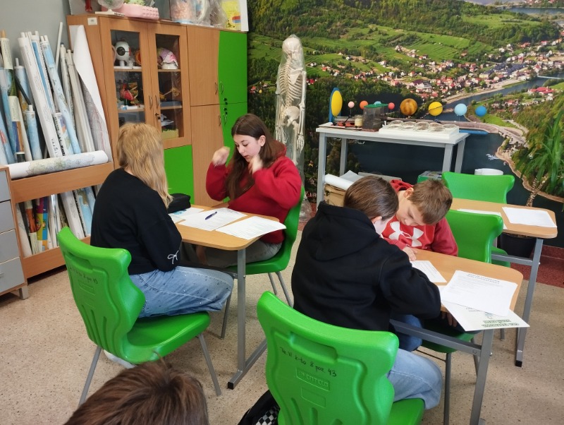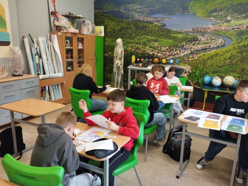 Z okazji Dnia Ziemi uczniowie wzięli udział w quizach, które w ciekawy sposób łączyły naukę ze współpracą i dobrą zabawą. Uczniowie pracowali w zespołach, przemieszczając się pomiędzy stacjami zadaniowymi, na których rozwiązywali różnorodne zadania związane z ochroną środowiska, energią, wodą, recyklingiem oraz geografią. Uczestnicy wykazali się dużym zaangażowaniem i chętnie podejmowali kolejne wyzwania. Taka forma pracy sprzyjała integracji, rozwijaniu umiejętności współpracy oraz utrwalaniu wiedzy w praktyczny i atrakcyjny sposób.